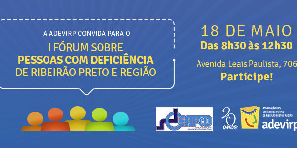 A ADEVIRP realizará o I Fórum Municipal de Pessoas com Deficiência de Ribeirão Preto e Região, em sua sede, no dia 18 de maio. O evento é aberto a todos os cidadãos comprometidos com a efetiva inclusão social de PCDs.